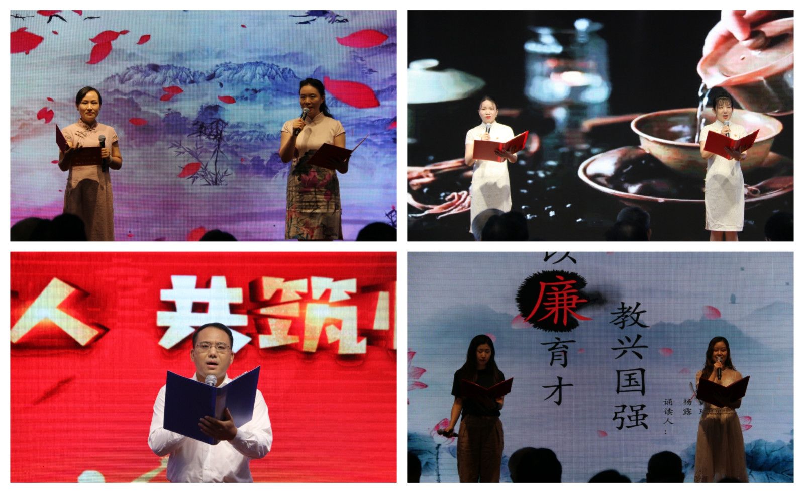 隨后,來自各參賽部門選送的14組選手,為大家呈現(xiàn)了一場主題鮮明、振奮人心的視聽盛宴。他們用文字的力量、聲音的魅力,飽滿的情感、自信的形象,鏗鏘的氣勢,弘揚(yáng)清廉文化,唱響師德之歌,一篇篇倡廉揚(yáng)潔的經(jīng)典詩文,一句句禮贊師德的壯麗詩行,講述了作為一名職業(yè)教育人的使命與擔(dān)當(dāng),抒發(fā)了對祖國、對黨、對學(xué)校的熱愛,表達(dá)了知敬畏、守底線、志存高遠(yuǎn)、勇?lián)姑男判暮蜎Q心。