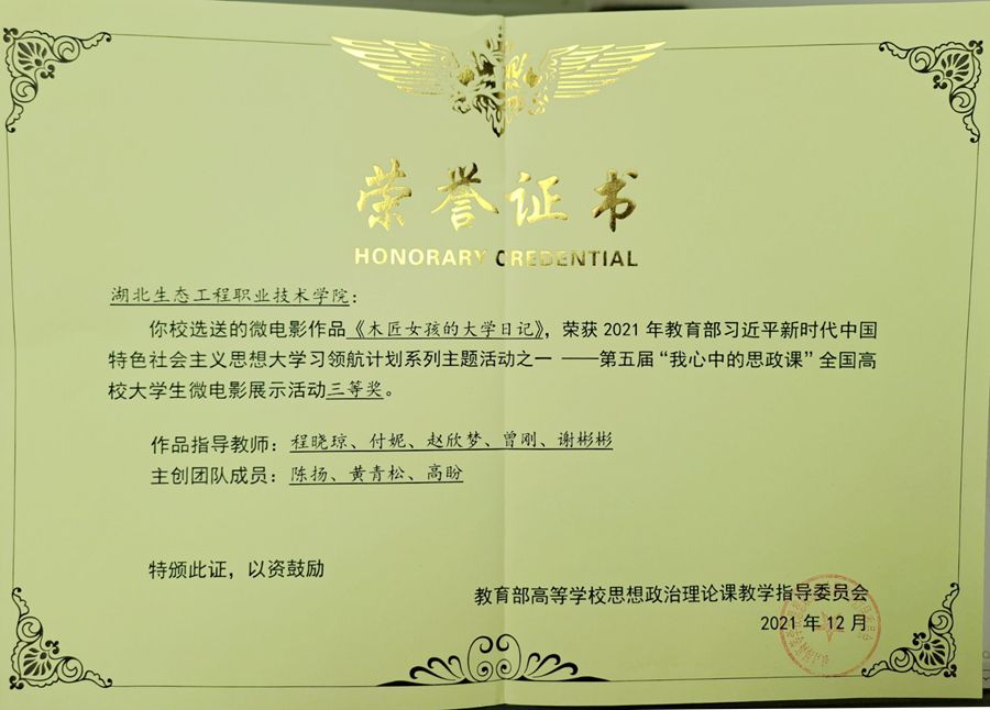 學校榮獲教育部第五屆“我心中的思政課”全國高校大學生微電影三等獎