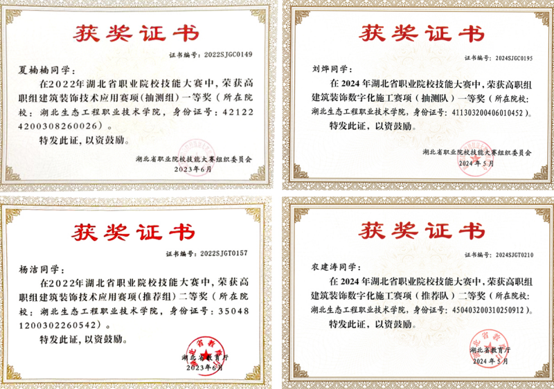 建筑裝飾數(shù)字化施工賽項(xiàng)推薦組二等獎(jiǎng),抽測(cè)組一等獎(jiǎng)